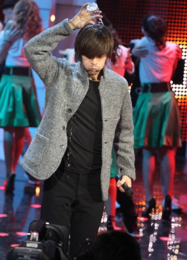 На уровне верхней зрительской трибуны - живой оркестр «Фонограф-Джаз» под управлением Сергея Жилина. Тишман репетирует песню несколько раз, берет воображаемый стакан с водой (на съемке у него все будет по-настоящему), отпивает пару глотков, а потом выливает остаток воды себе на голову. Вот такие страсти, такие переживания...
