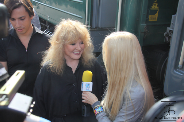 Вчера, в 10 часов утра по местному времени на железнодорожный вокзал Риги, в своем личном вагоне приехали Алла Пугачева и Максим Галкин. Главная пара российского шоу-бизнеса прибыла в столицу Латвии для участия в юбилейном 10-ом музыкальном фестивале "Новая волна - 2011". На перроне Примадонну и ее любимого мужчину встречали десятки журналистов. Алла и Максим охотно пообщались с ними, дали несколько интервью.