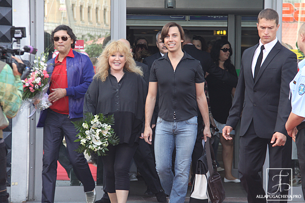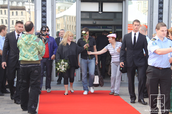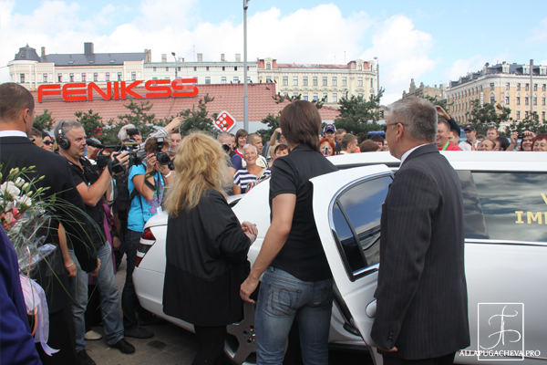 Покинув перрон, певица и телеведущий вышли на привокзальную площадь, где специально для них была выстлана красная дорожка. Сотни поклонников, выстроившихся вдоль дорожки, приветствовали звезд аплодисментами и криками: «Добро пожаловать» и «Мы вас любим». В честь юбилея конкурса Пугачева и Галкин выпили шампанского, после чего сели в белоснежный лимузин и уехали в свой любимый отель «Балтик Бич».