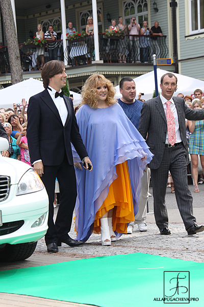 После представления Раймонда Паулса, Игоря Крутого и ведущих конкурса, Алла Борисовна спустилась со сцены в зал, откуда пока в ка честве зрителя посмотрела концерт. «Пока» потому что уже завтра Пугачева будет оценивать конкурсантов - кому-то из них достанется личный приз от Примадонны - «Золотая звезда Аллы».
