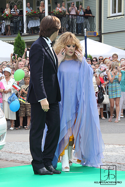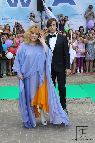 , выступление Газманова с попурри. Без выступления Аллы, конечно, скучно. Чего греха таить, лично я все годы смотрел конкурс только из-за Аллы. В Юрмале стартовал Десятый международный конкурс молодых исполнителей популярной музыки «Новая волна». Алла Пугачева, как вы знаете, традиционно является Музой фестиваля. Свои «прямые обязанности» Музы она начала выполнять на красной дорожке перед залом Дзинтари, лично встречая и представляя артистов и конкурсантов. К сожалению, начавшийся дождь намочил всех звезд и собравшихся зрителей, поэтому в телевизионную версию красная дорожка вошла в несколько урезанном виде.
