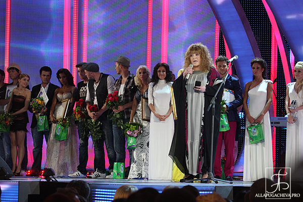 Алла Пугачева: В этой маленькой коробочке лежит не только «Золотая звезда Аллы», но и частица моей души. А зацепить мою душу с годами все сложнее и сложнее. Я очень хочу, чтобы появлялись новые имена. Я все для этого делала и буду делать дальше. Для меня не важны роскошные костюмы, блеск и суета на сцене, даже не совсем блестящие вокальные данные... Для меня важно, чтобы у исполнителя, выходящего на сцену, была гармония с самим собой и с тем, что он делает. Я очень внимательно просмотрела всех конкурсантов. «Золотая звезда Аллы» достается финской группе «Flute of shame».