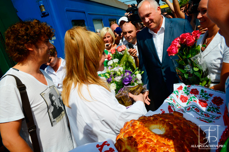 На перроне симферопольского вокзала Аллу и Максима приветствовали букетами цветов представители Верховной Рады Автомоной Республики Крым, Министерства культуры автономии и многочисленные поклонники. А девушки в национальных нарядах поднесли артистам хлеб-соль. Соблюдая традиции, Алла и Максим отломили кусочек каравая и испробовали его. Алла Борисовна призналась, что путешествие в Крым было для нее комфортным. А на вопрос СМИ: «Чем будете заниматься в Ялте?» Пугачева парировала легко и непринужденно: «Буду заниматься фестивалем - организационными и творческими вопросами. И еще... хочу искупаться в Черном море!»